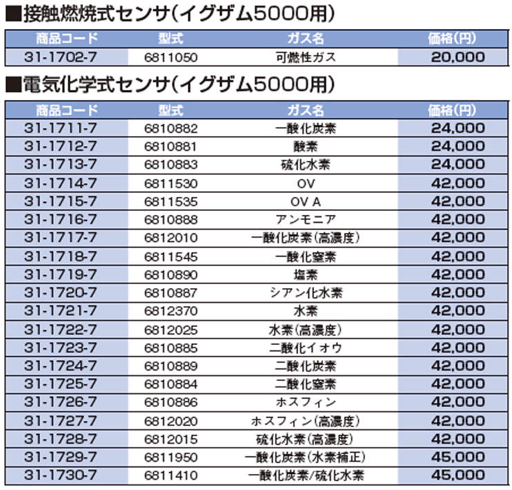 ※電気化学式センサは31-1711~31-1730、接触燃焼式センサは31-1702をご覧下さい。 |